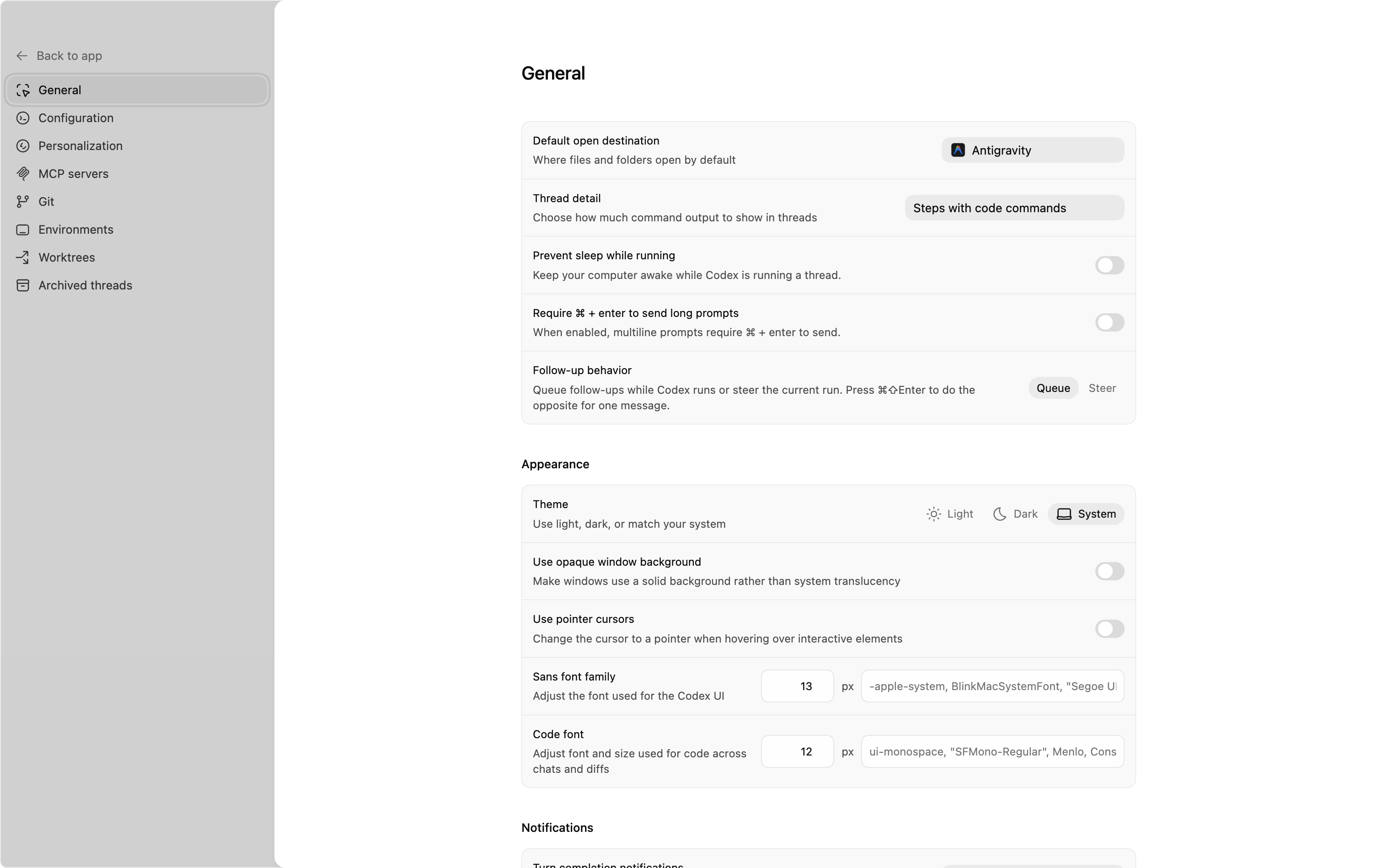 配置 Codex 应用的行为和偏好设置,这里就不具体介绍了