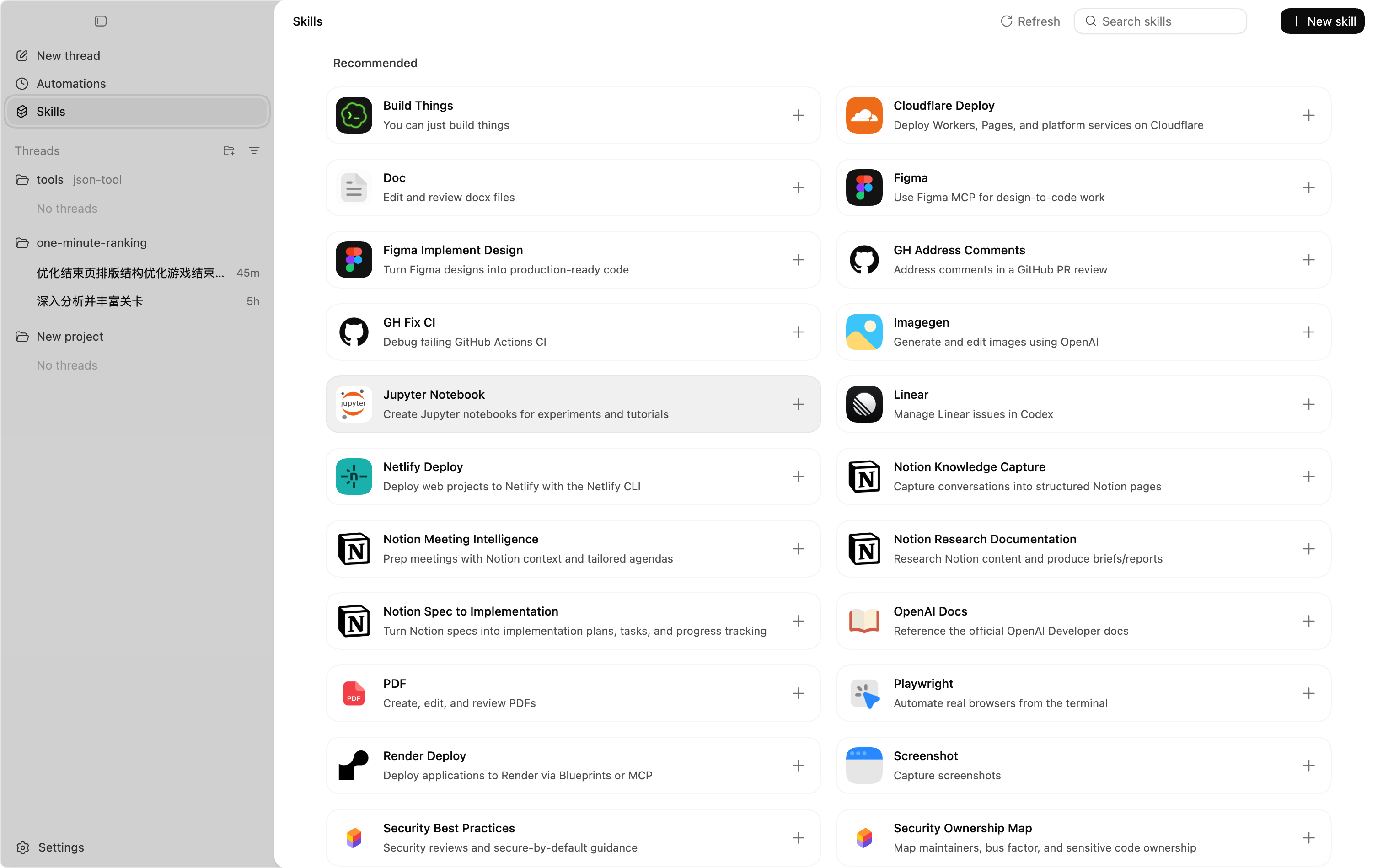 通过添加 Skills,你可以扩展和强化 Codex 在特定场景下的能力。
